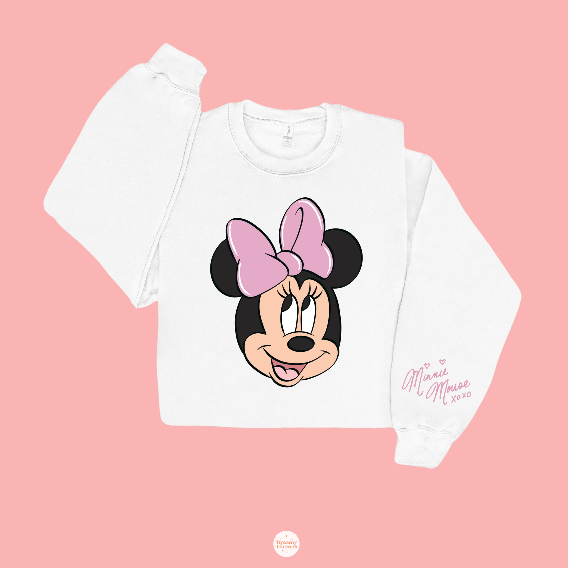 Add a touch of classic charm to your wardrobe with our Minnie Signature Sweatshirt, an exclusive Dreamy Threads design! Featuring a timeless image of Minnie in her signature style, this cozy white sweatshirt is the perfect blend of comfort and elegance. To make it even more special, the sleeve features Minnie's autograph, adding a unique, personal touch that makes this design truly one-of-a-kind.