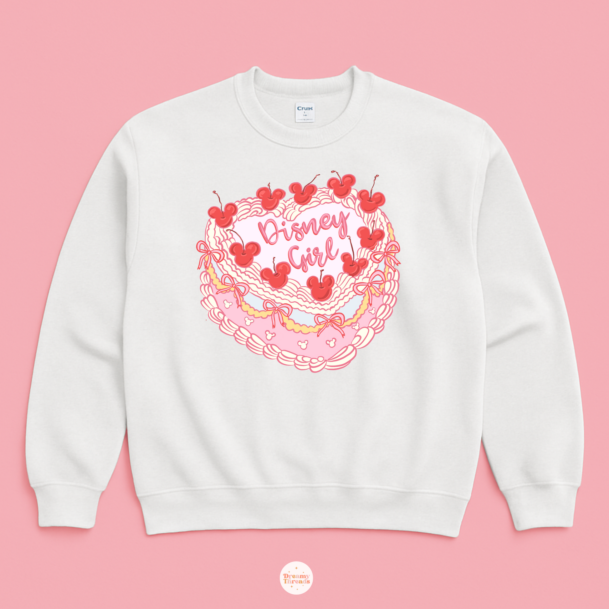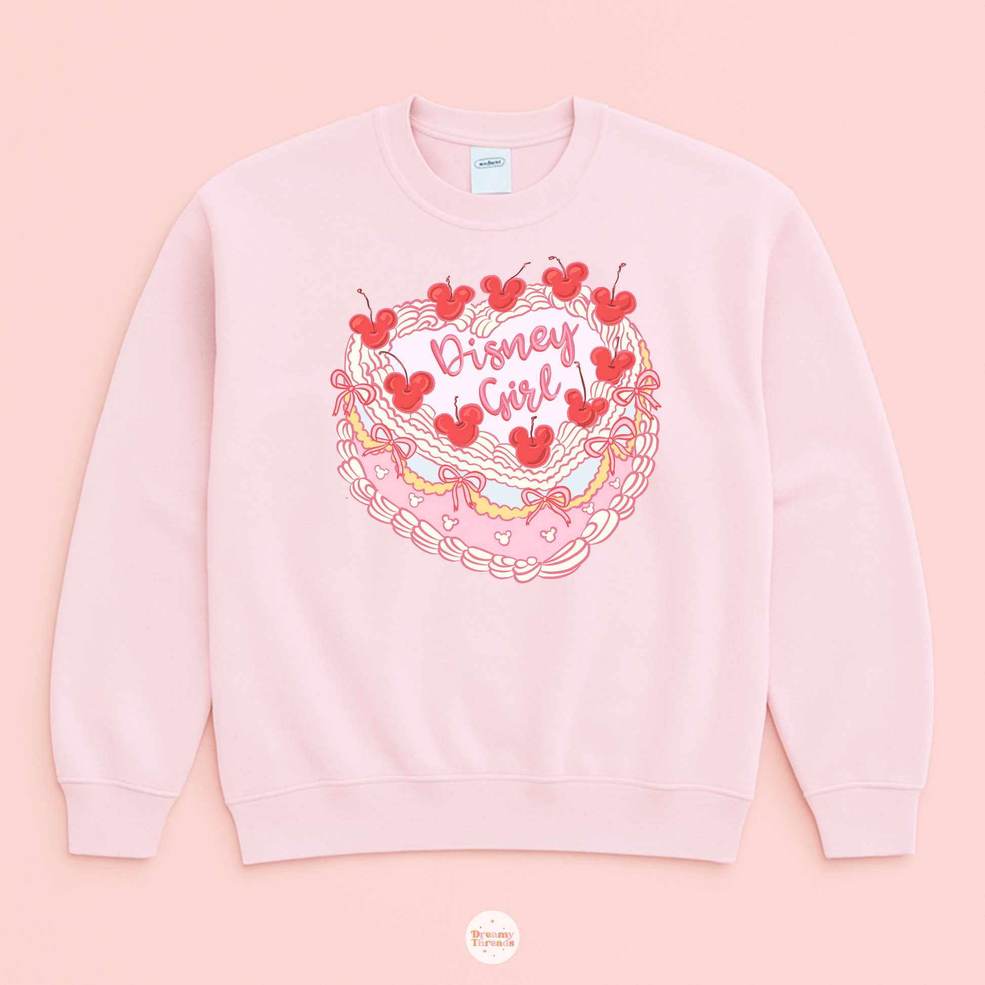 Calling all the girls! ππ Our Girl Cake Sweatshirt is the sweetest way to show off your love for the magic. This adorable design features a pink heart-shaped cake topped with red cherry Mickeys, bows, and frilly piping!