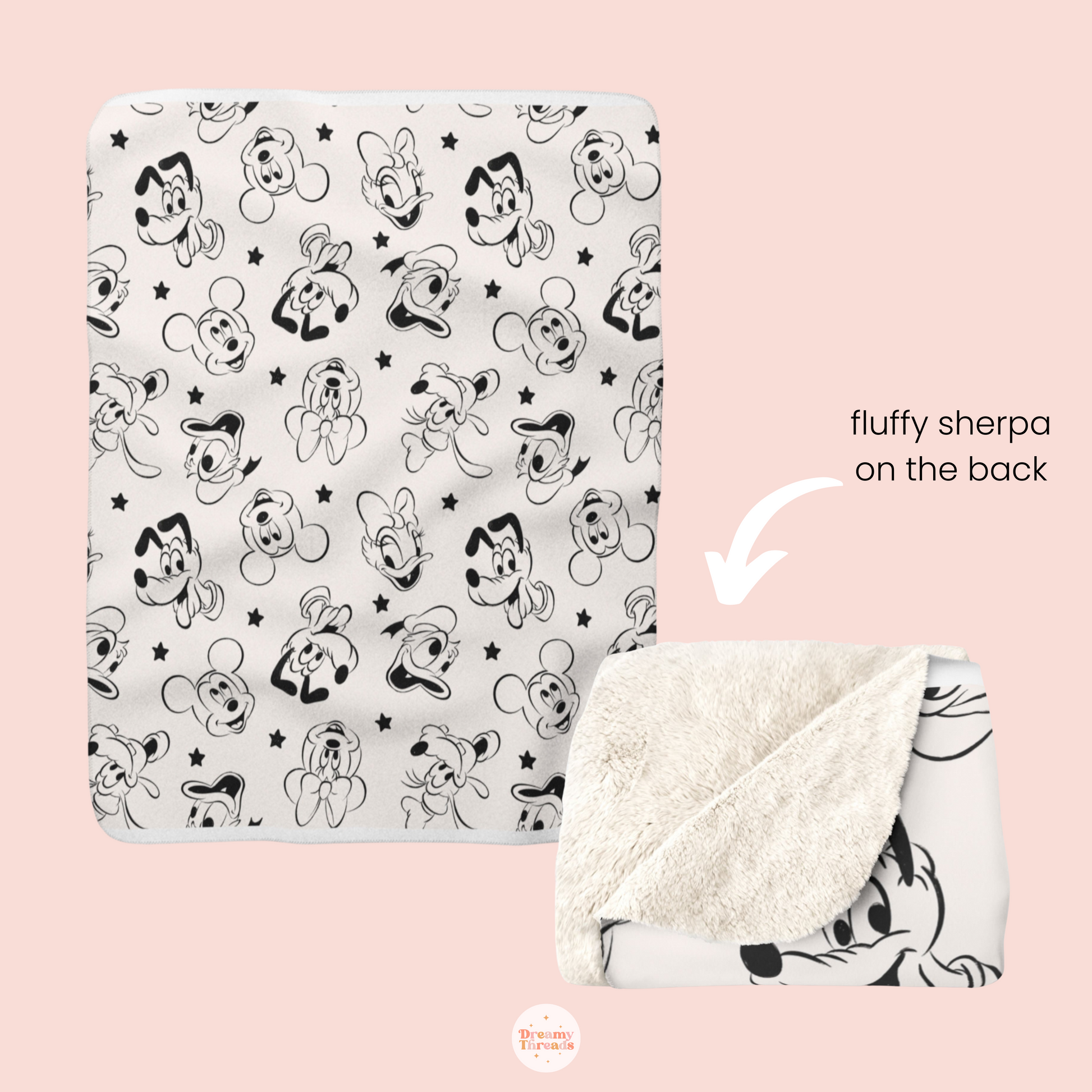 This cozy 50' x 60' blanket features an adorable print of all the characters on one side. On the other side, you'll find our luxurious sherpa material that is supremely soft to the touch, providing extra warmth and comfort.