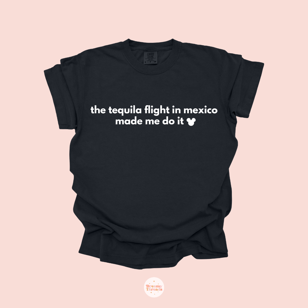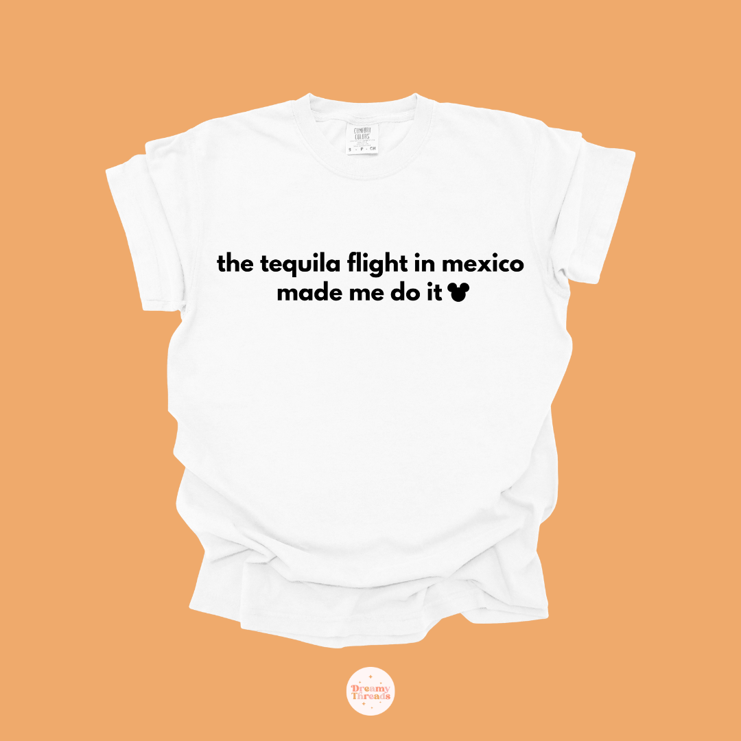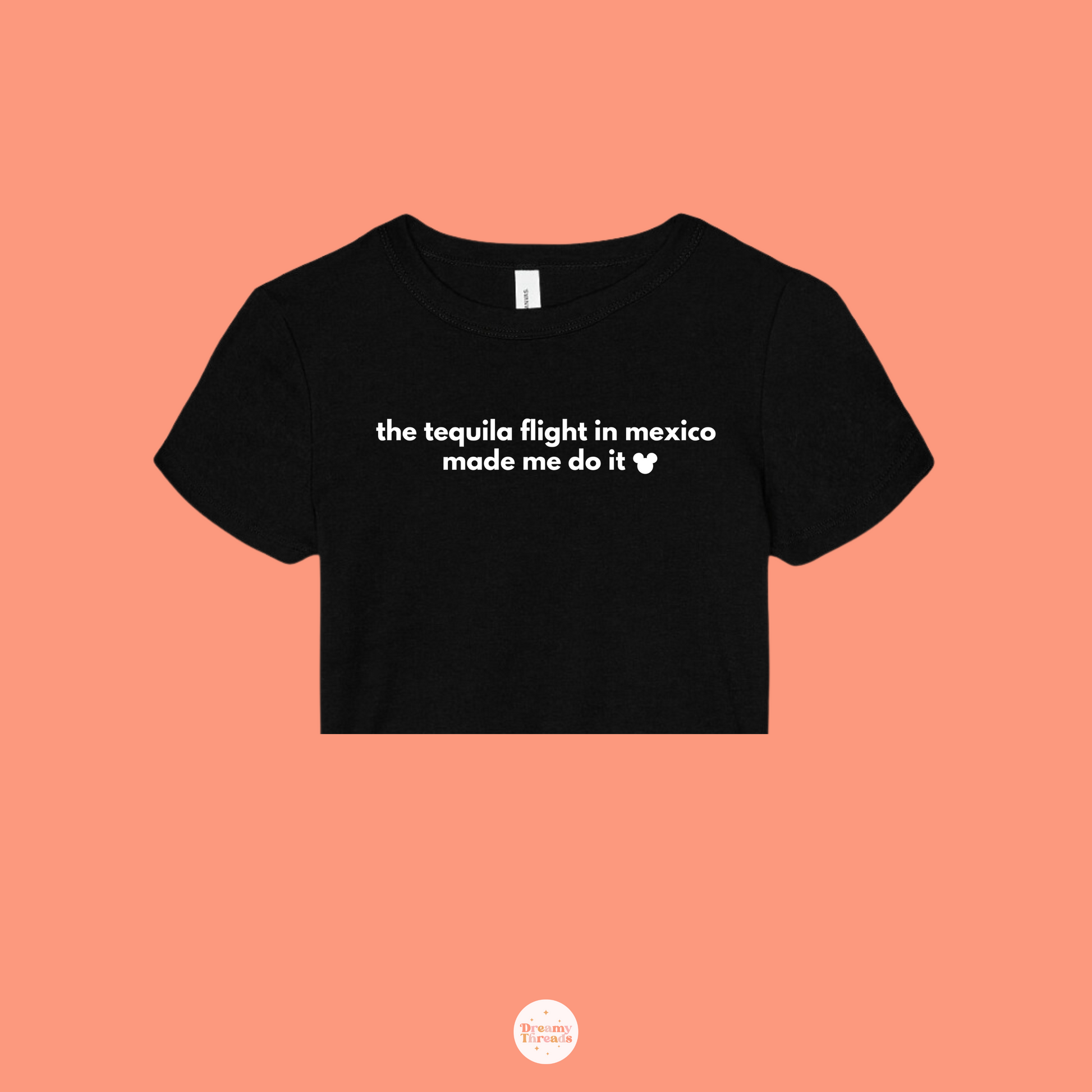Introducing our latest shirt for Epcot's Food and Wine Festival: "the tequila flight in Mexico made do it" tee! Available in classic black or white, this shirt comes in two styles: a regular t-shirt or a trendy cropped baby tee for adults. Unlike the usual festival designs, this one is sleek, fun, minimalistic, and perfect for making a statement without the typical cheesy graphics. Ideal for large groups looking to match, if you would like a different color shirt, we can make it happen —message us on Instagram @dreamythreadsco to get it in any color you want!
