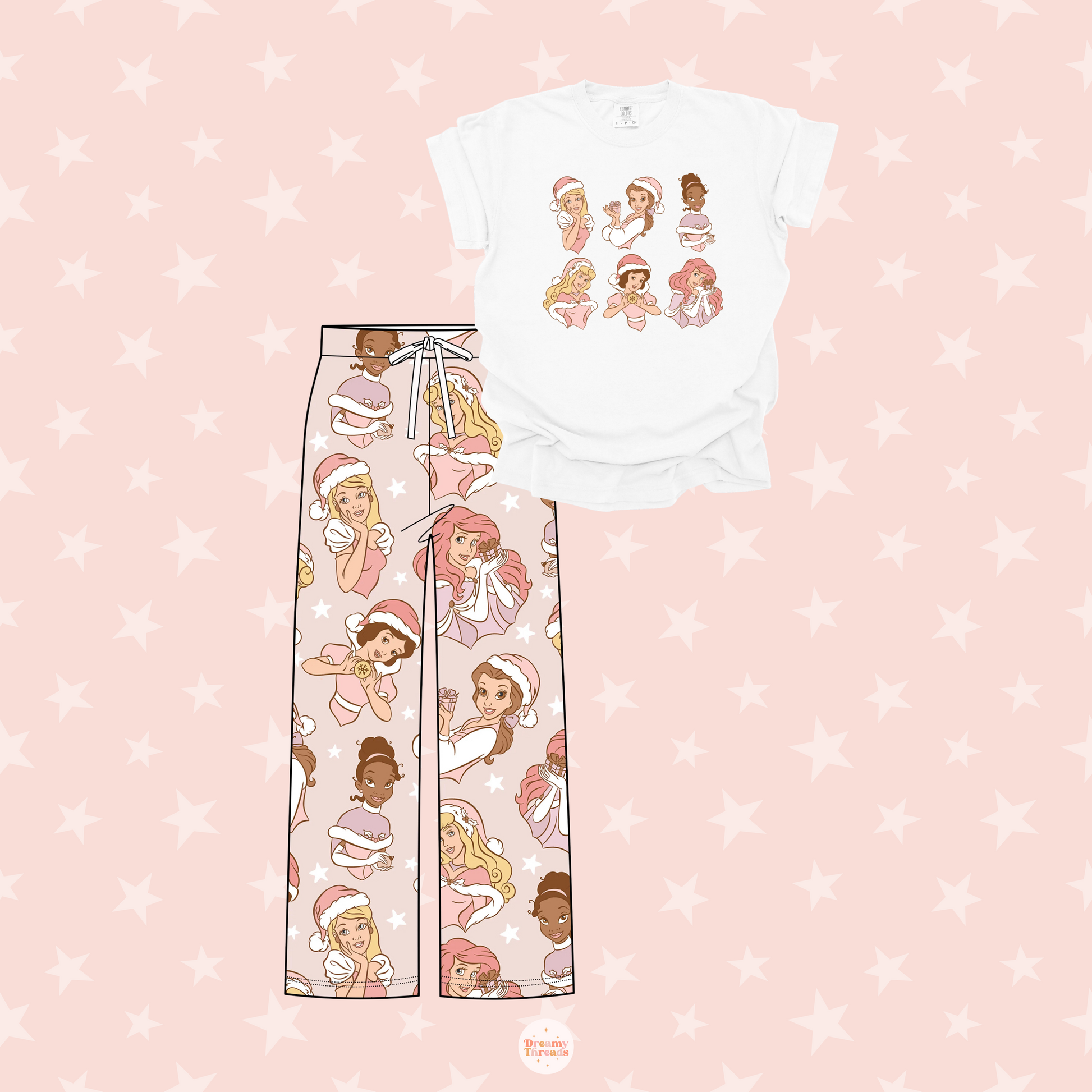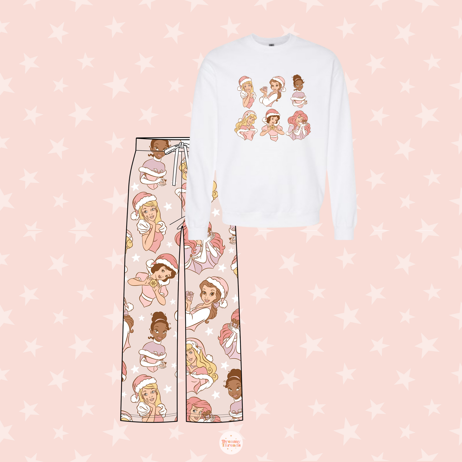 Introducing our Jolly Princess PJs, now available for adults! These super soft pants feature a comfortable drawstring for perfect adjustability, ensuring the coziest fit for lounging or sleeping. Choose from multiple options: the pants alone, the pants paired with a matching T-shirt, or go all out with the pants and a cozy crewneck sweatshirt. These PJs are the perfect match to our toddler Jolly Princess PJs, making them ideal for a mommy-and-me holiday look. Get ready to relax in style with princesses dressed in their festive pink Christmas gear!