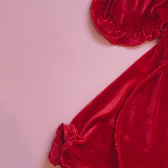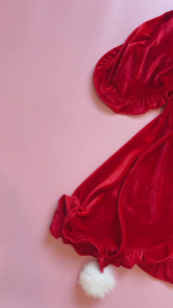 A perfect velvet cape to throw over holiday outfits, tutus, dresses, and more! Perfect for Holiday photos too! Featuring optional hood for head and pom-pom ties!