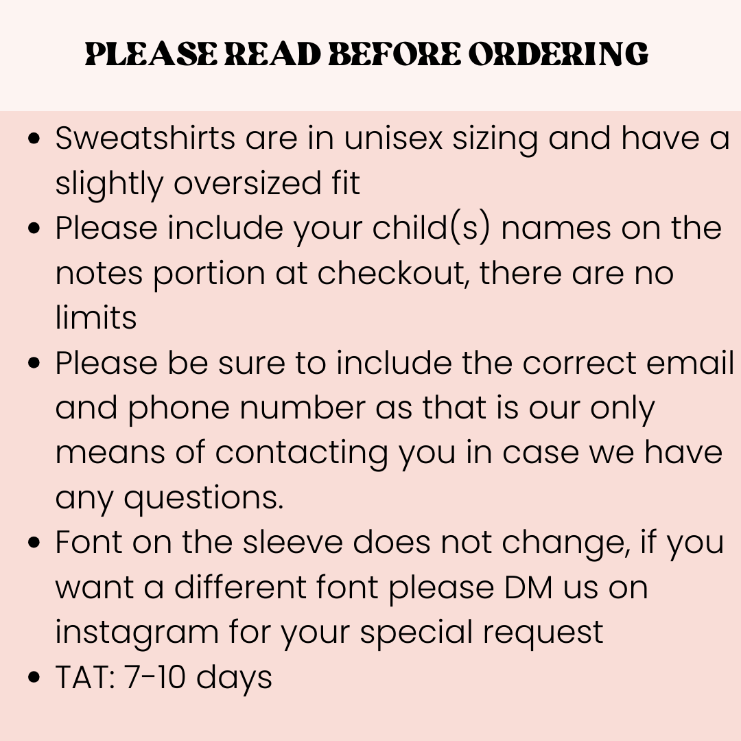 But that's not all – we understand the importance of personalization. That's why each sweatshirt is completely customizable with your child's name elegantly inscribed on the left sleeve. It's a subtle yet heartfelt touch that celebrates the unique bond between mother and child, making every wear a personal reminder of the love that fills your heart.