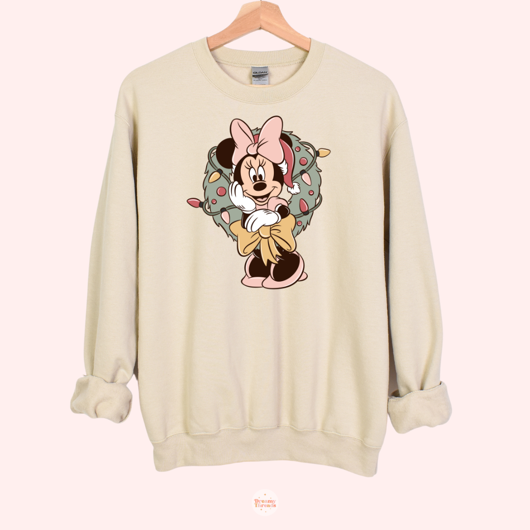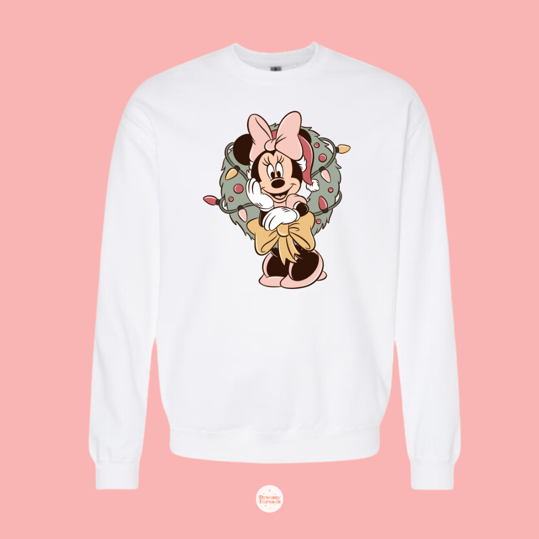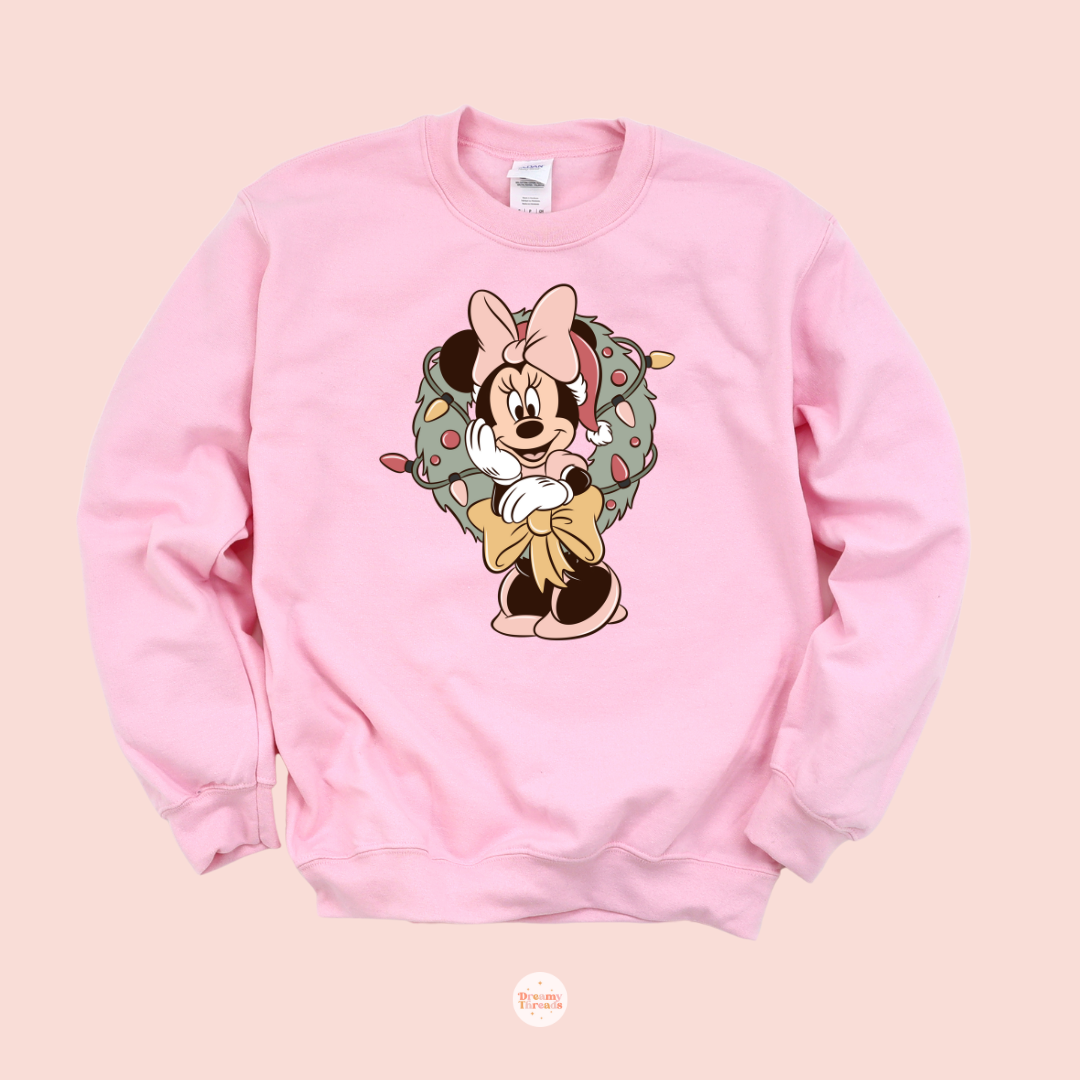 Expertly crafted with a touch of magic, the Magical Wreath Tee/Crew features a charming Minnie Mouse holding a wreath design. Available in a variety of colors in both tee and sweatshirt styles, it's perfect for all ages and occasions. Add a touch of whimsy to your wardrobe today!