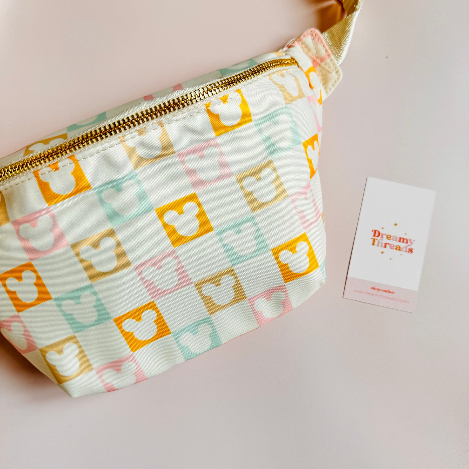 Whether you're heading to the parks or out for a day in the city, our Pastel Checkered Mouse Fanny Pack is the perfect blend of functionality and style. Don't miss out on this must-have accessory!
