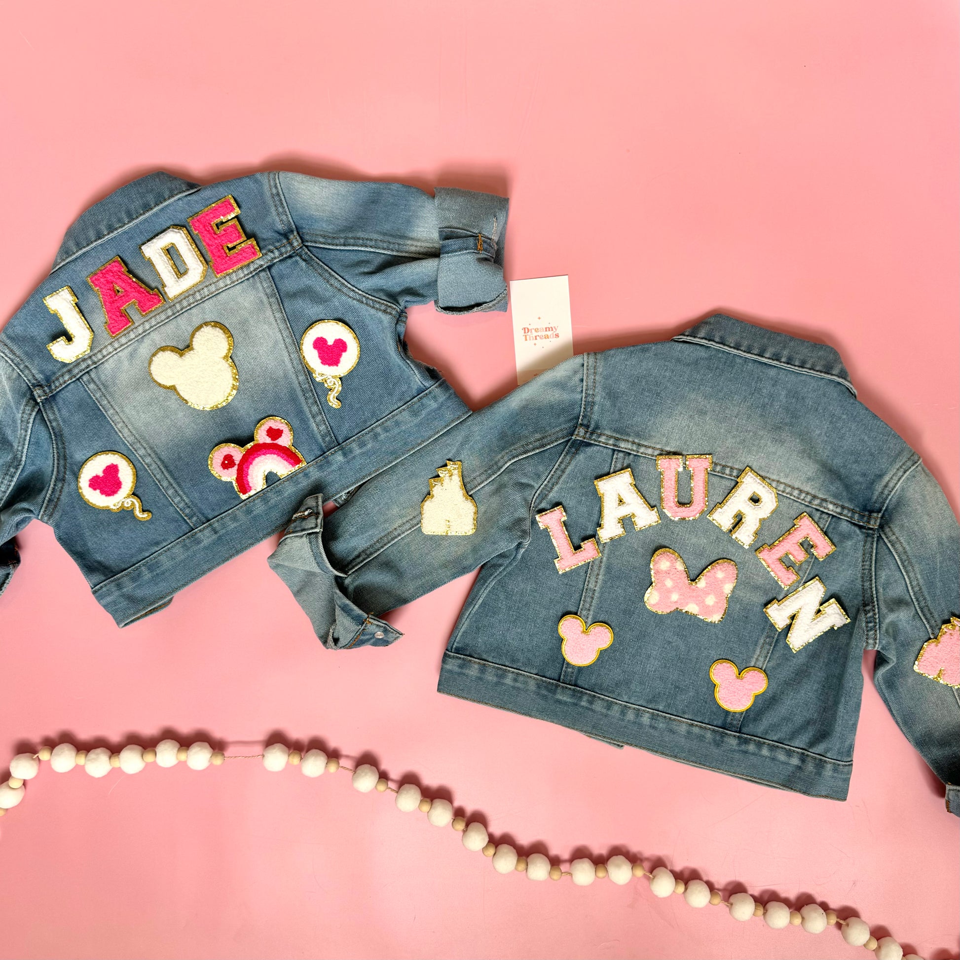 Introducing our brand new customizable denim jackets! These jackets are perfect for adding a personal touch to your little one's wardrobe with chenille letters and patches.