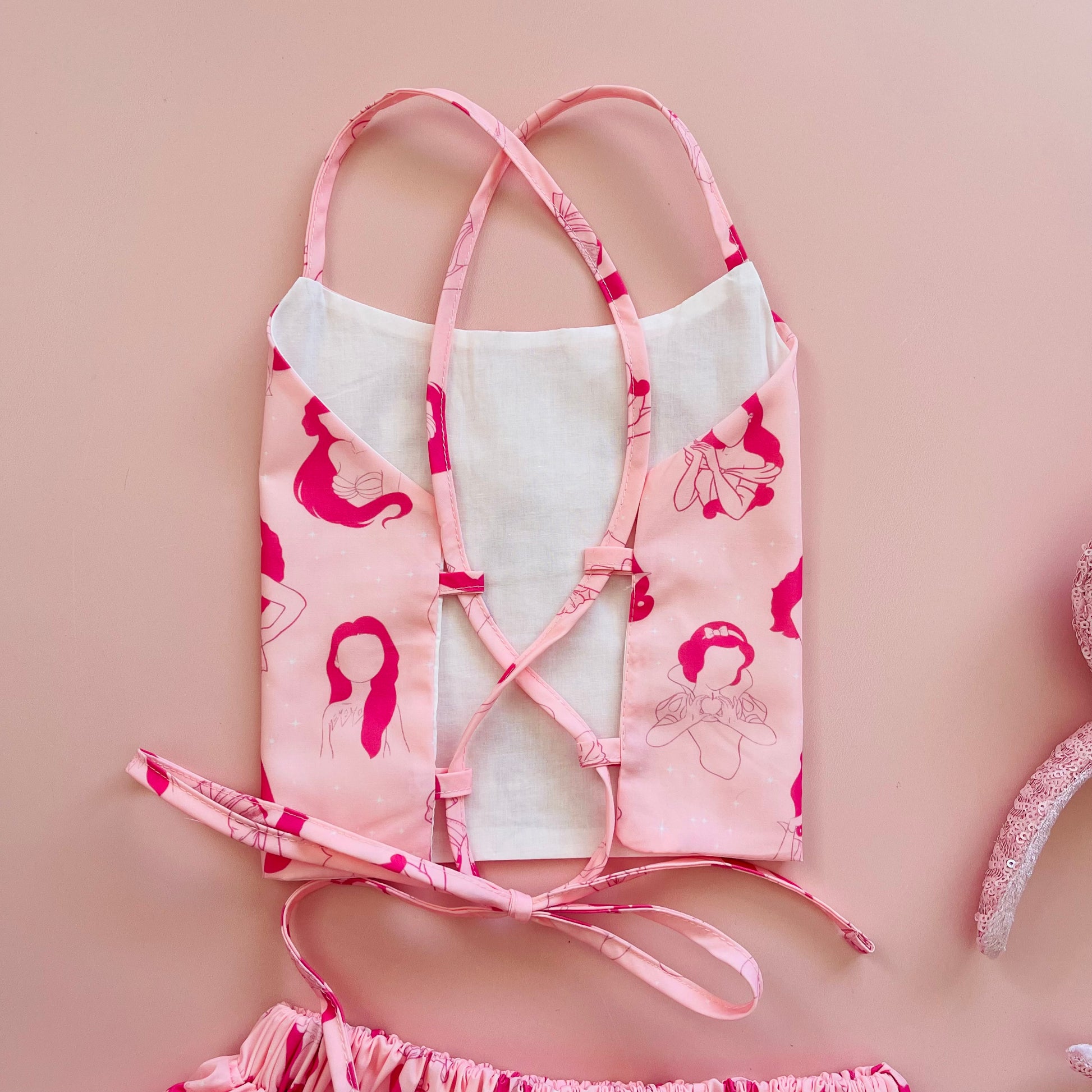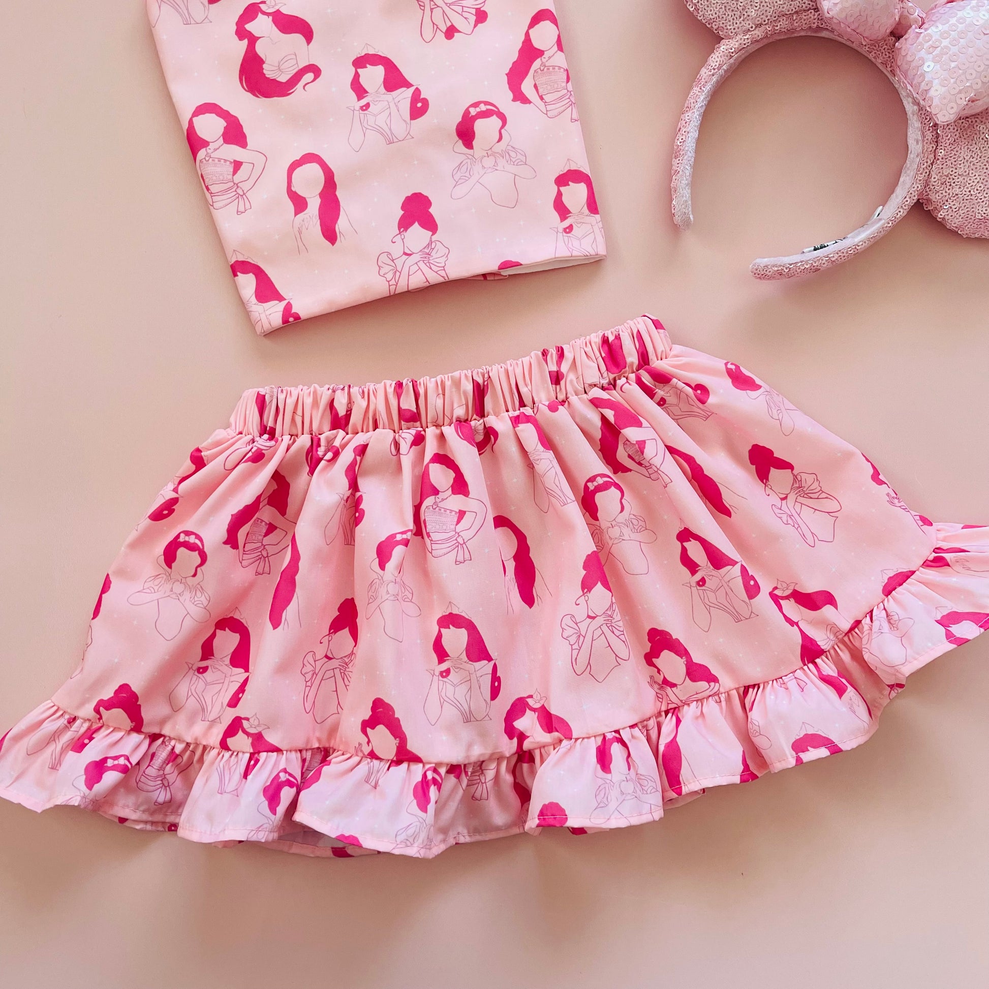 Introducing our enchanting Pink Princess Set, where every little princess can feel like royalty! Designed with an adjustable back for a perfect fit and a super adorable flowy skirt, this set is as comfortable as it is charming. Adorned with princess faces in delightful light and dark pink tones, it's the epitome of regal elegance. Whether strolling through the Magic Kingdom or attending a royal ball, this set is fit for every fairy tale adventure. Let your little one's imagination soar with our Pink Princess Set!