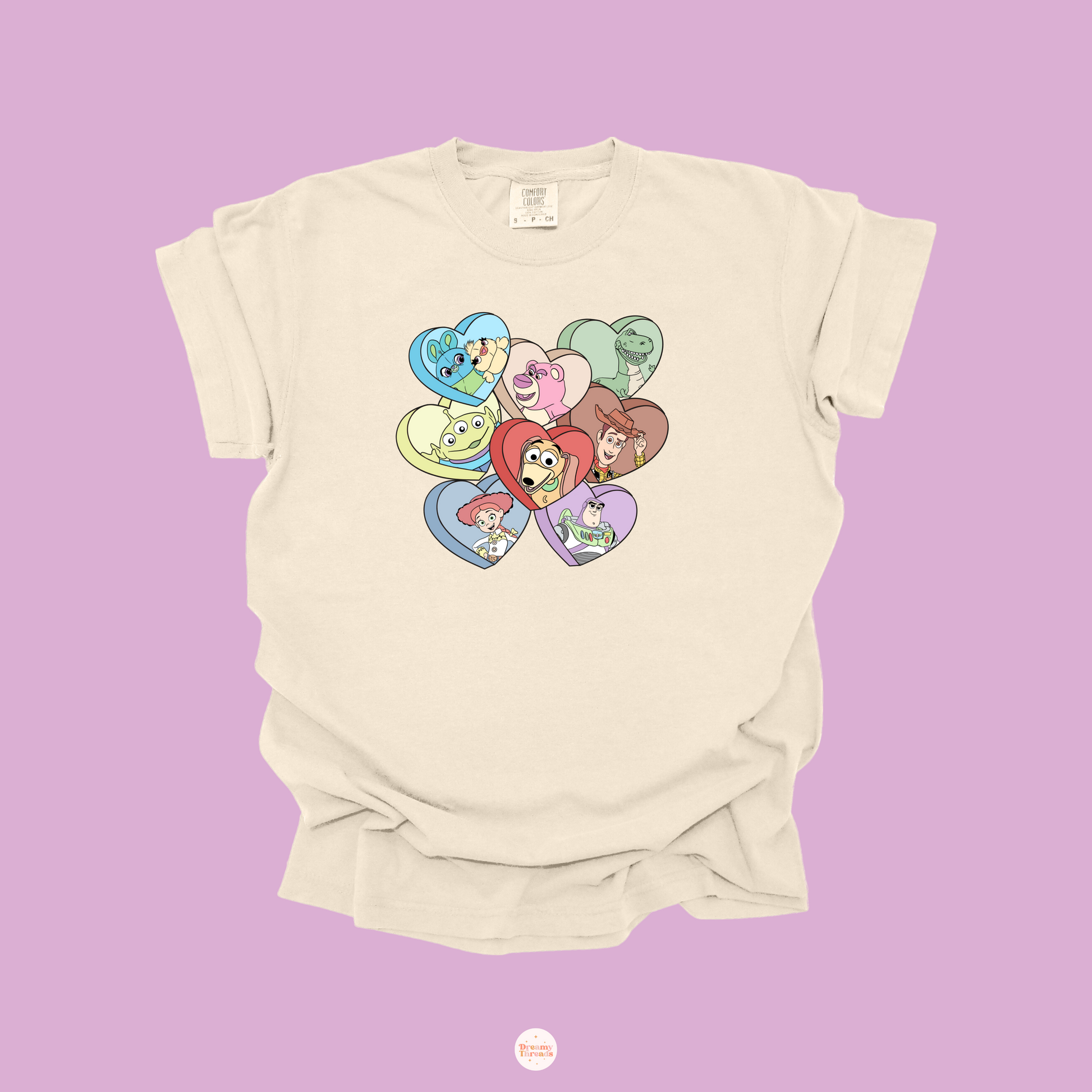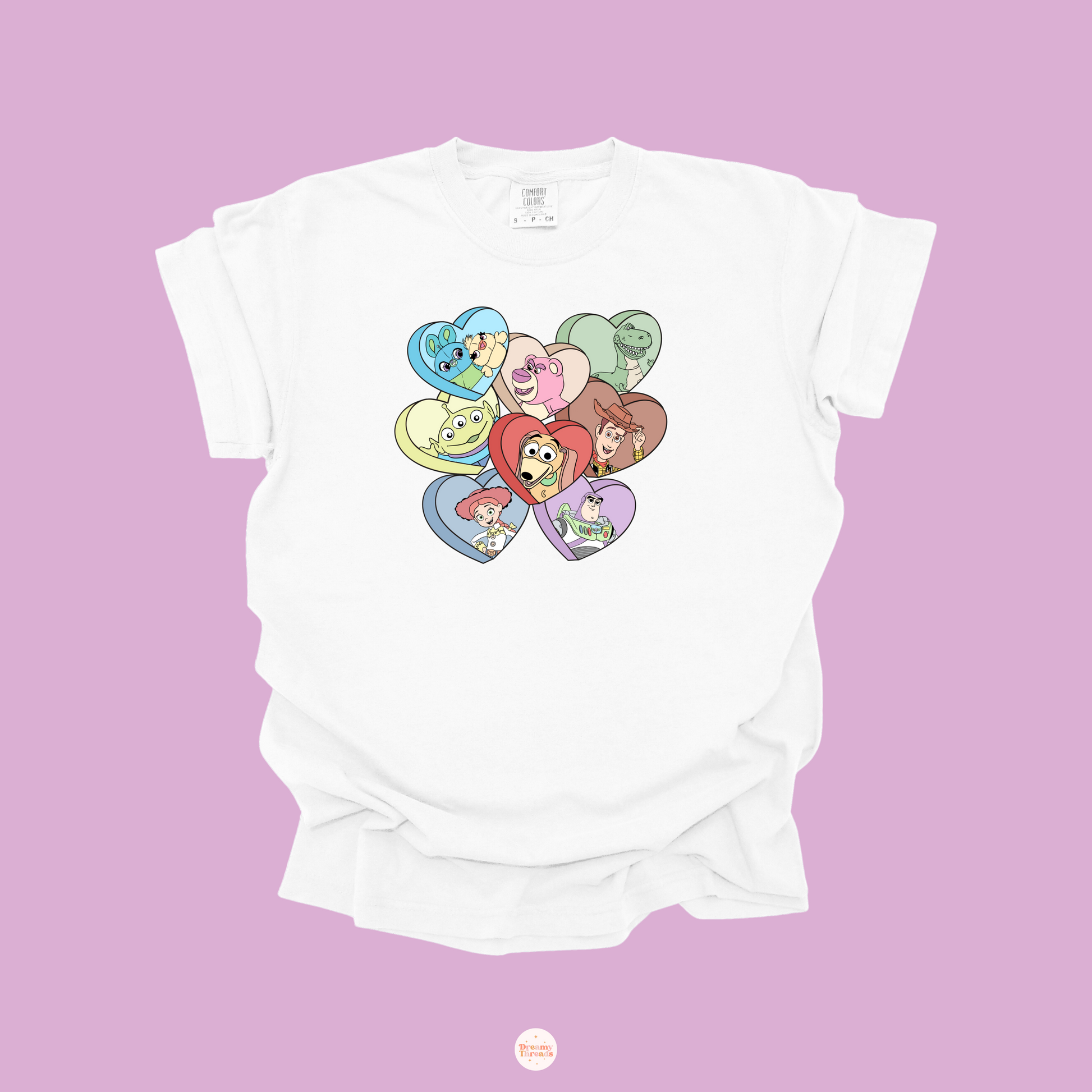Bring the magic of Toy Story to life with our adorable Sweetheart Toys T-Shirt! Featuring all your favorite Toy Story characters in a fun and festive Valentine's Day theme, this is perfect for fans of all ages. Whether you're matching with your little one or keeping cozy on your own, this design adds a touch of playful nostalgia to any outfit.