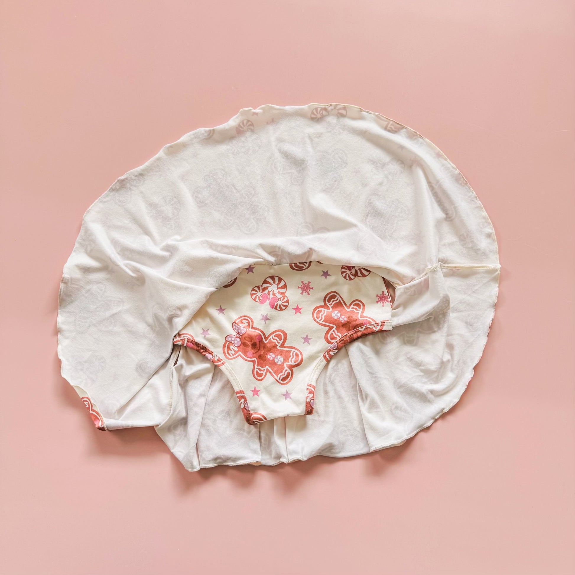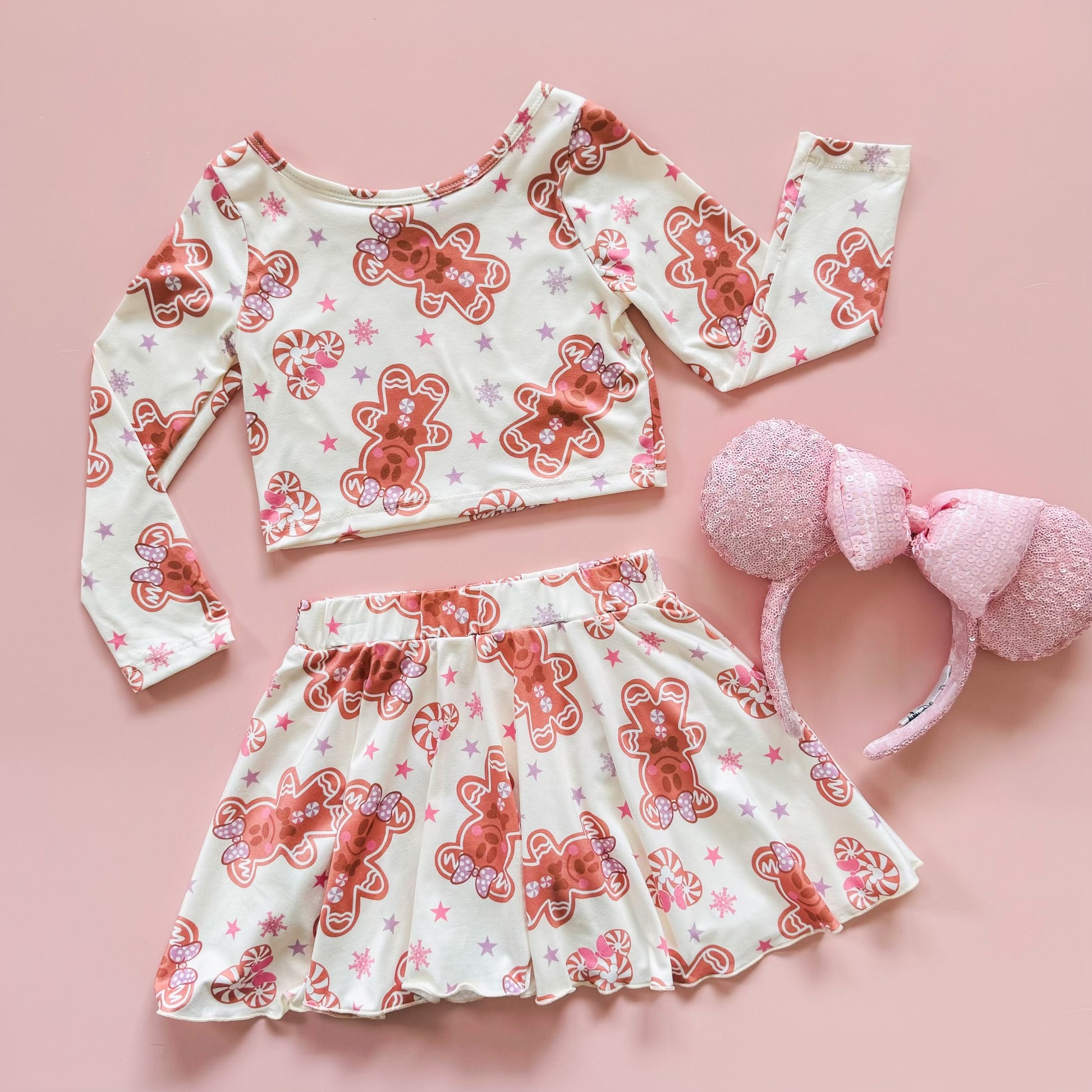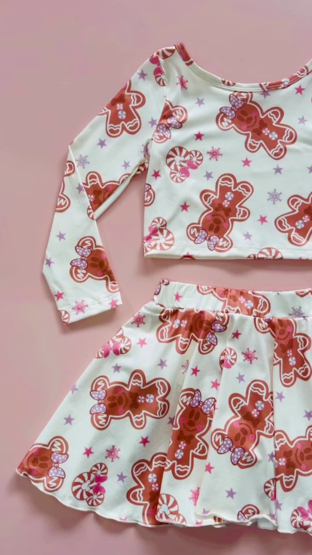 Introducing our adorable Gingerbread Set, perfect for the holiday season! This toddler set features a cozy long-sleeve top and a matching skirt, both made from soft, buttery fabric that feels amazing on your little one’s skin. Ready to ship, this outfit is designed with festive gingerbread and candy patterns, bringing a sweet holiday vibe to any day. Ideal for park days, holiday photos, or cozying up at home. Grab yours now for the cutest winter look!