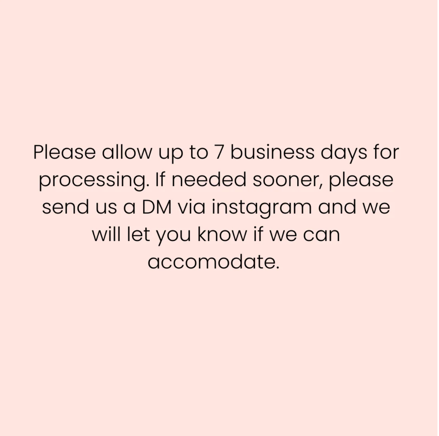 Please allow 5-7 business days for shipment. If needed sooner, please send DM to IG account @dreamythreads.co and we will help.